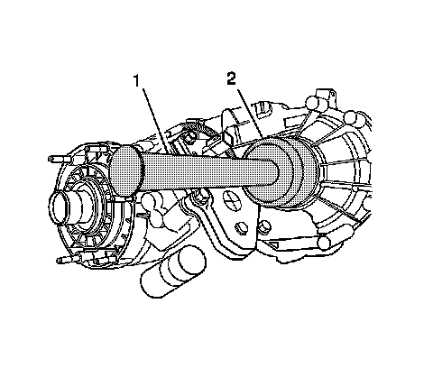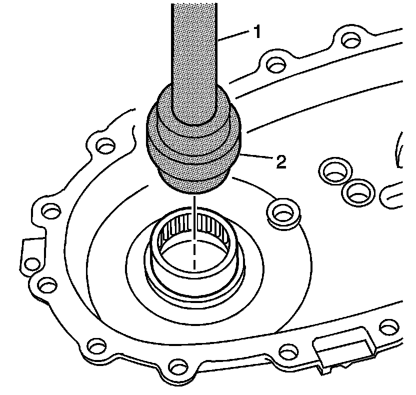 4. Using the J 8092 (1) and the J 36370 (2), install the front output shaft rear bearing.