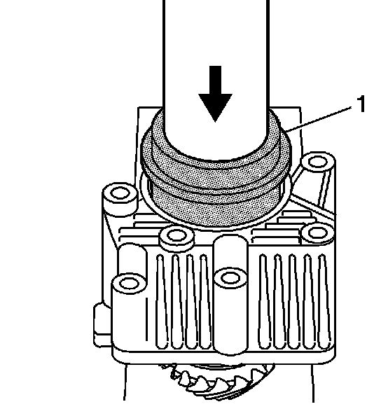 1. Use the J 44908 (1) and a hydraulic press in order to install the outer bearing race to the extension housing.