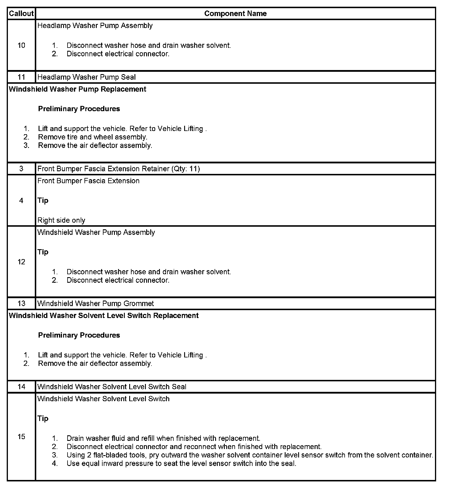 SOLVENT CONTAINER, PUMP, LEVEL SENSOR REPLACEMENT - HEADLAMP WASHER