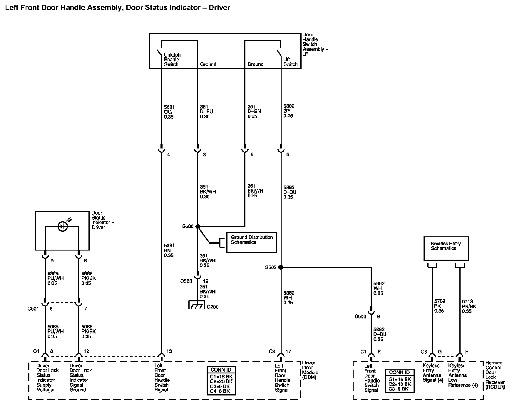 Locations: The locations for the Connectors, Grounds, Splices, and Grommets shown within these diagrams can be found via their numbers at Vehicle Locations. Locations