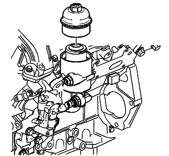 4. Notice: Lubrication must be applied to the threads of the oil filter cap prior to installation. Failure to lubricate the oil filter cap threads can hinder later removal and cause possible oil filter cap damage.