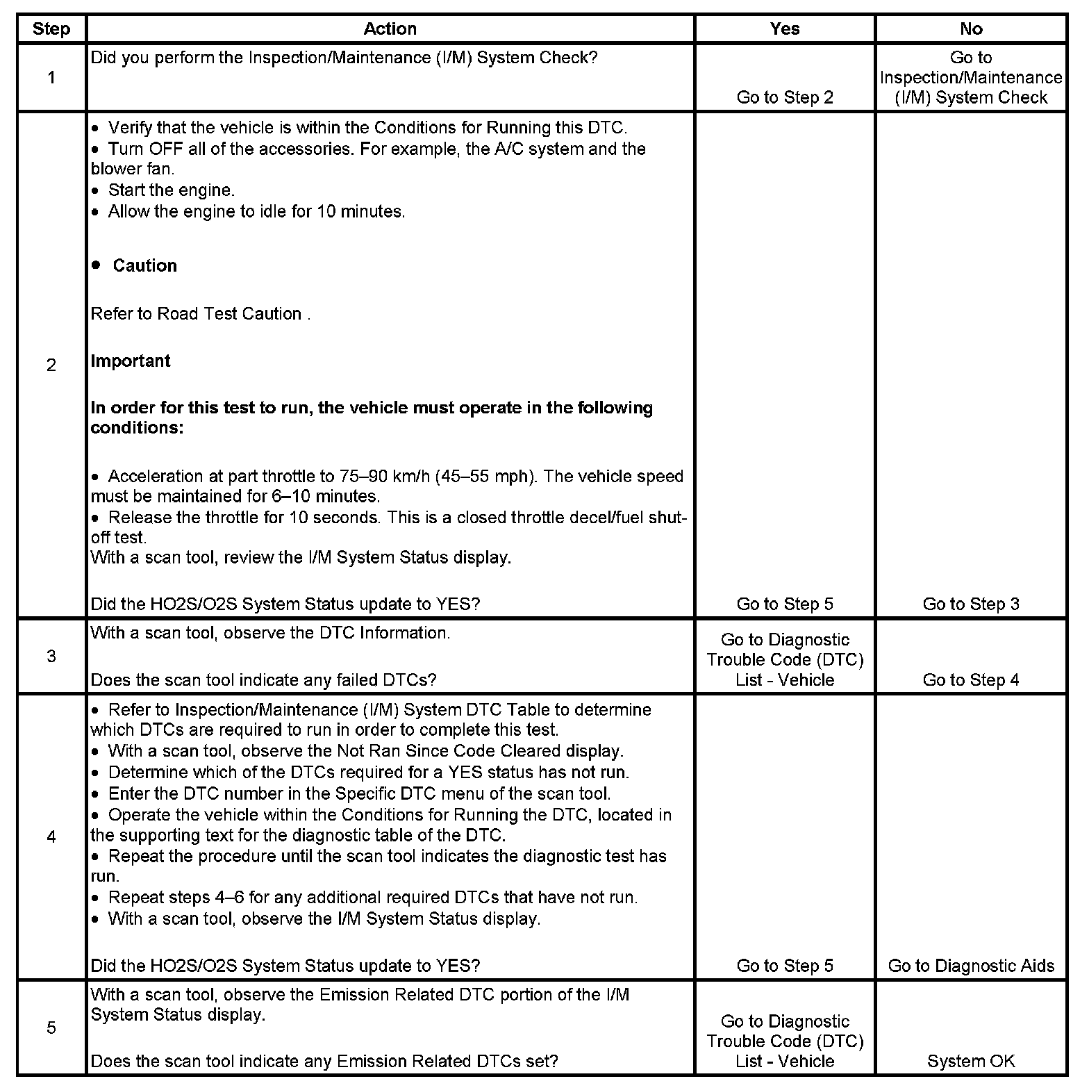 - The I/M System Status only reports on whether or not a diagnostic has run, not what the outcome of the test was. If any Emission Related DTC sets after the tests are complete, the DTC will require diagnosis.