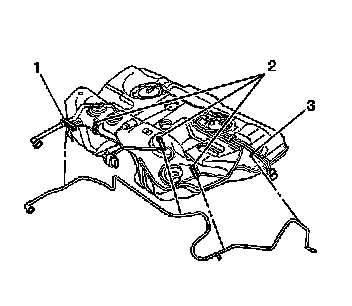- The 3 retaining features (2) on the fuel tank