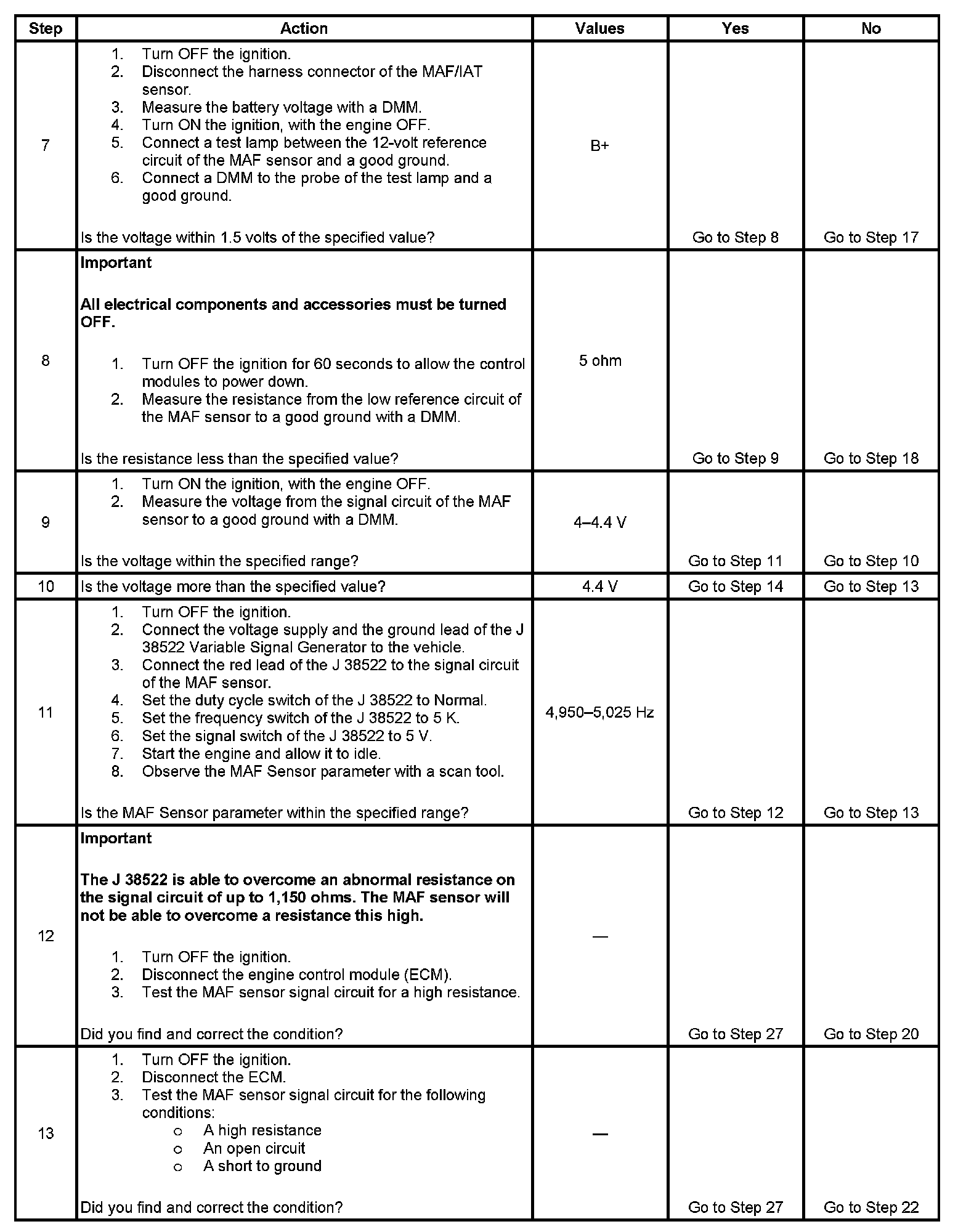11. This step will determine if the ECM can accurately process the frequency signal that it receives from the MAF sensor.