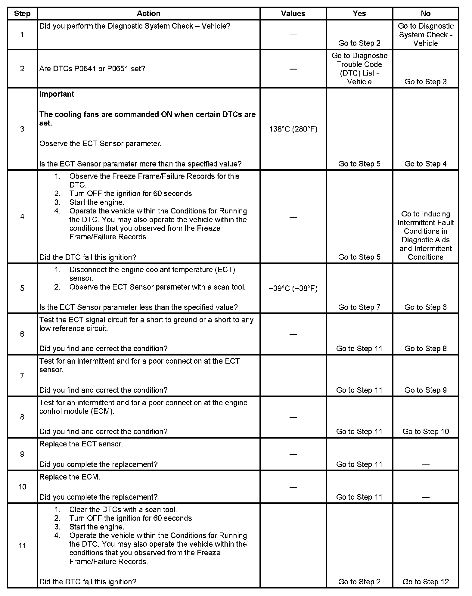The ECM detects that the ECT Sensor parameter is more than 138°C (280°F) for less than 1 second.