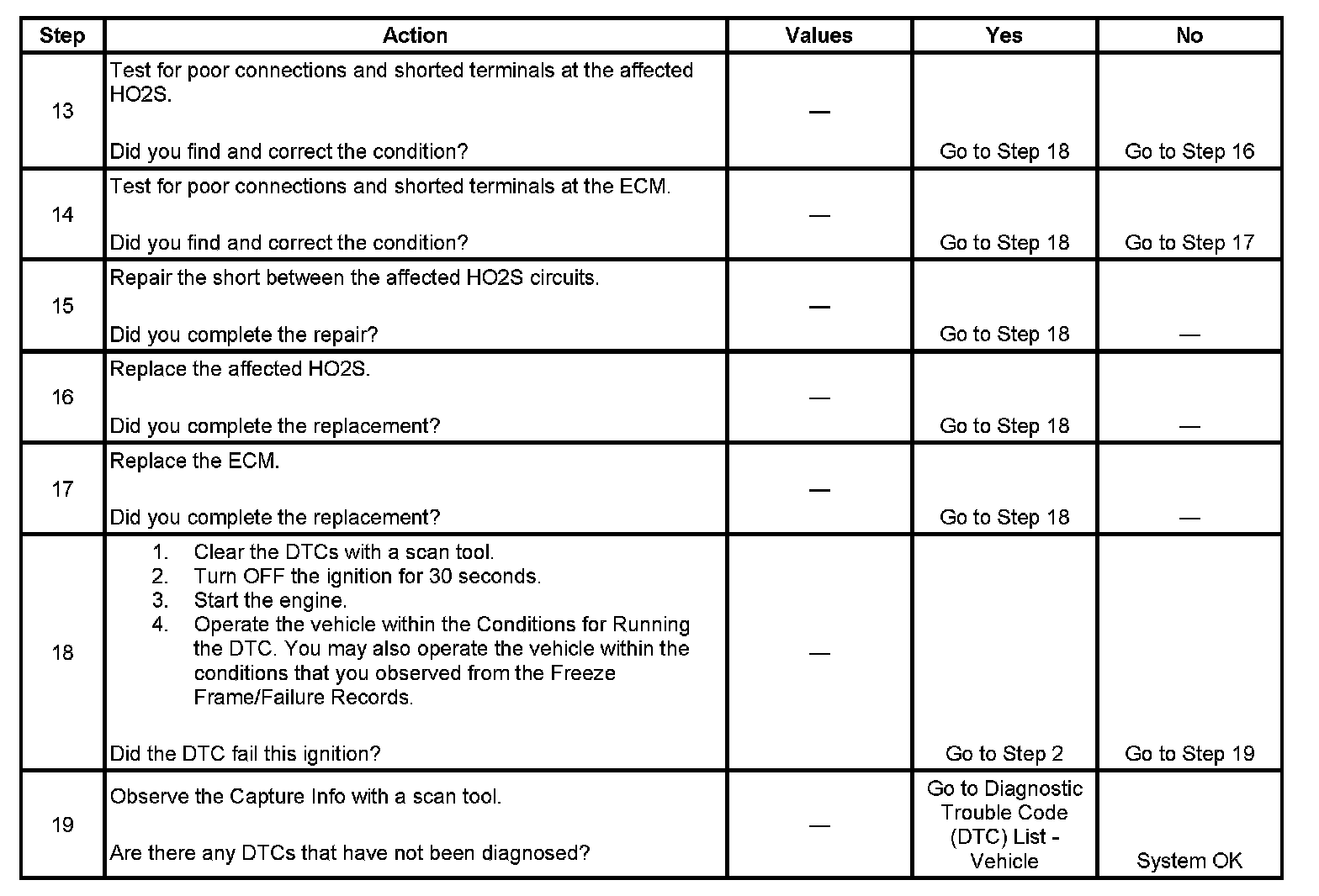 - DTCs P0030, P0031, P0032, P0036, P0037, P0038, P0050, P0051, P0052, P0056, P0057, P0058, P0132, P0133, P0135, P0137, P0138, P0139, P0140, P0141, P0152, P0153, P0155, P0157, P0158, P0159, P0160, P0161, P1137, P1138, P1157, P1158, P2231, P2234, P2237, P2240, P2243, P2247, P2251, P2254, P2626, P2629, P167A, P167B are not set.