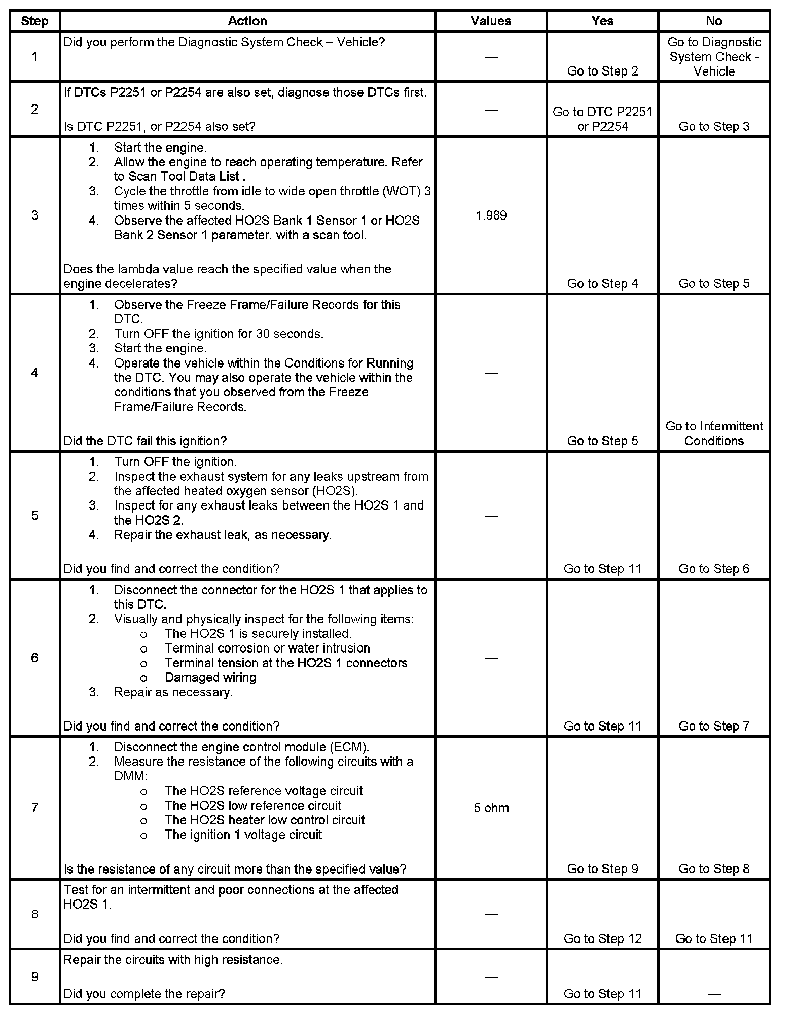 - DTCs P0030, P0031, P0032, P0036, P0037, P0038, P0050, P0051, P0052, P0056, P0057, P0058, P0101, P0102, P0103, P0106, P0107, P0108, P0131, P0132, P0133, P0135, P0137, P0138, P0139, P0140, P0141, P0151, P0152, P0153, P0155, P0157, P0158, P0159, P0160, P0161, P1137, P1138, P1157, P1158, P2231, P2234, P2237, P2240, P2243, P2247, P2251, P2254, P2626, P2629, are not set.