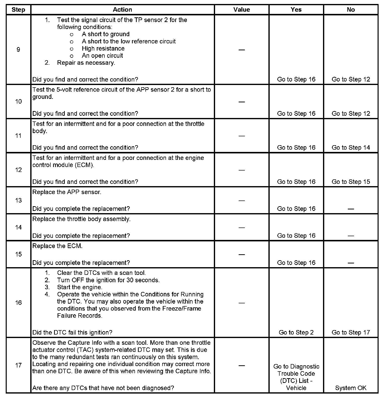 10. The 5-Volt reference for the TP sensors and the APP sensor 2 are connected inside the ECM. This step is to determine if the APP sensor is affecting the 5-Volt reference circuit of the TP sensors.