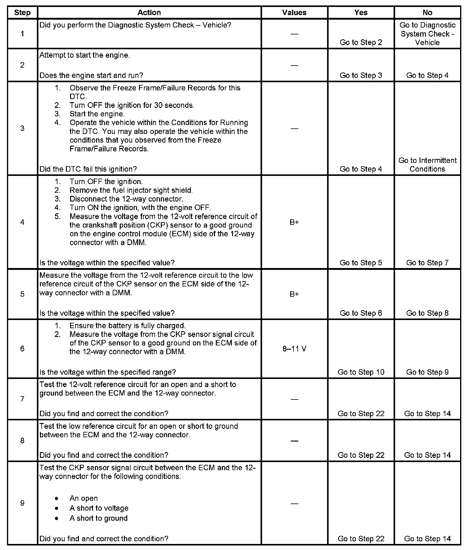The ECM does not detect a signal from the CKP sensor for more than 1 second.