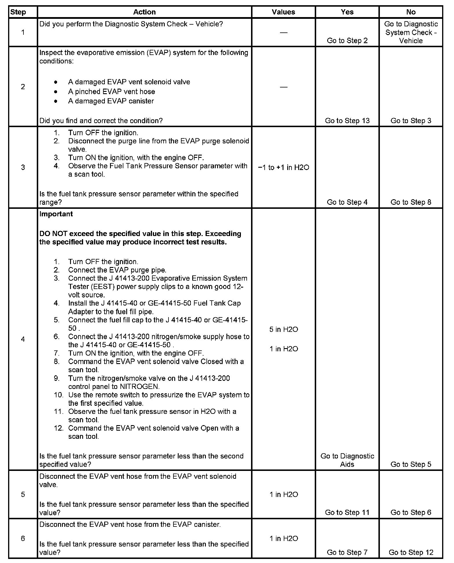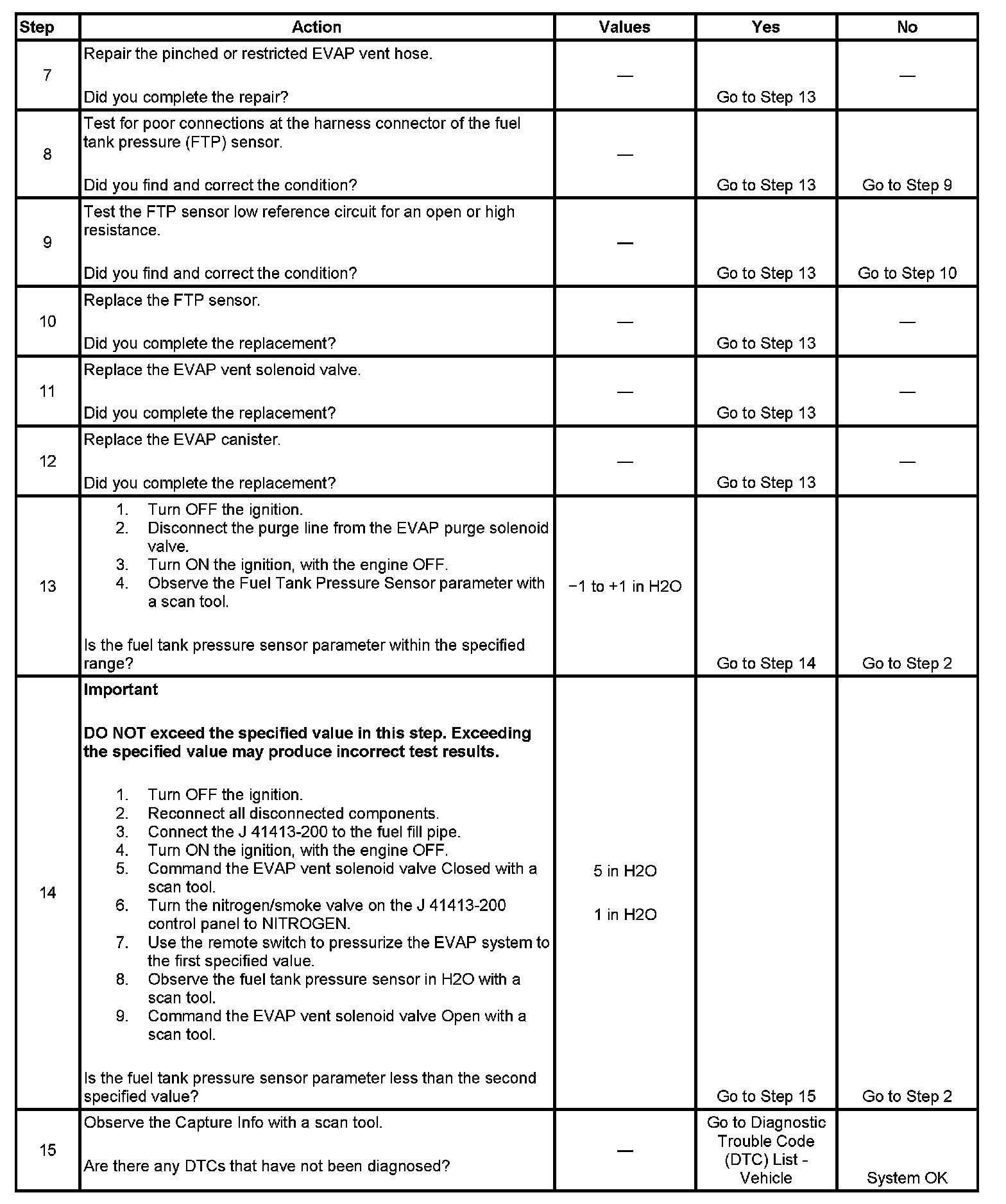 - DTC P0449, P0451, P0452, P0453, P0454, P0498, P0499 are not set.