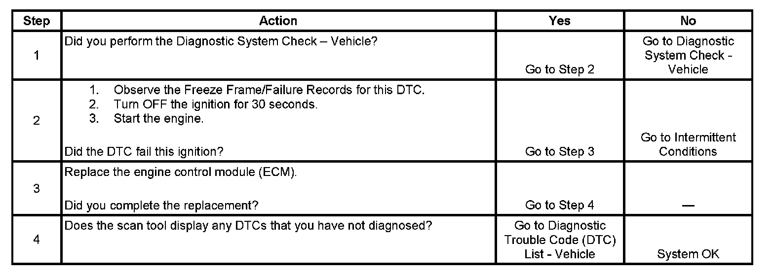- The control module records the operating conditions at the time the diagnostic fails. The first time the diagnostic fails, the control module stores this information in the Failure Records. If the diagnostic reports a failure on the second consecutive ignition cycle, the control module records the operating conditions at the time of the failure. The control module writes the operating conditions to the Freeze Frame and updates the Failure Records.