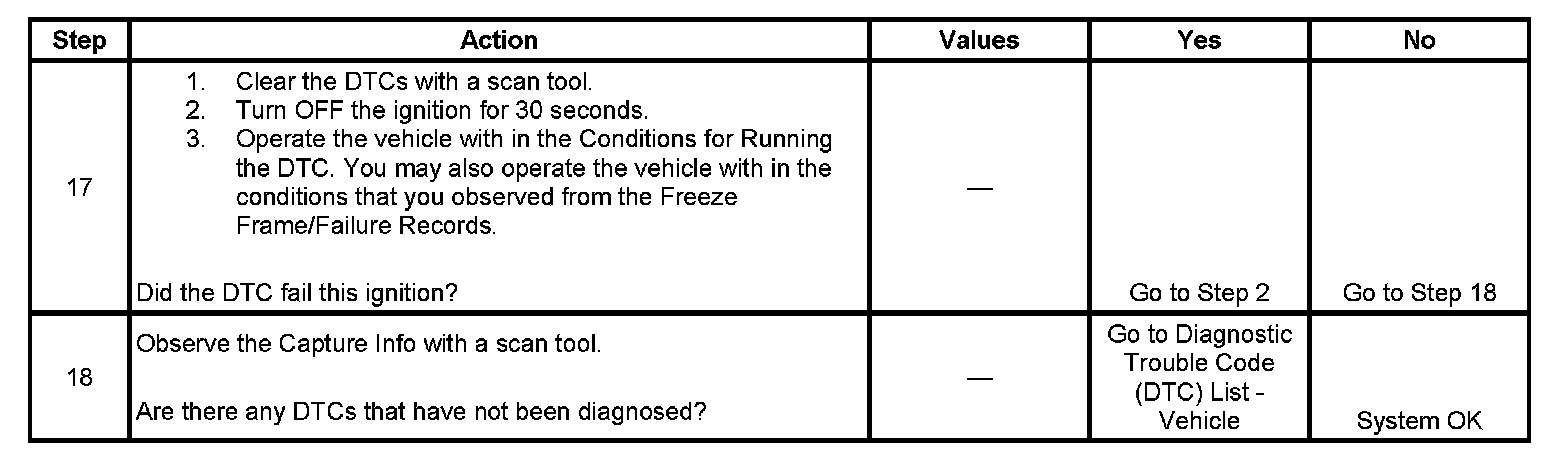 - A current DTC, Last Test Failed, clears when the diagnostic runs and passes.