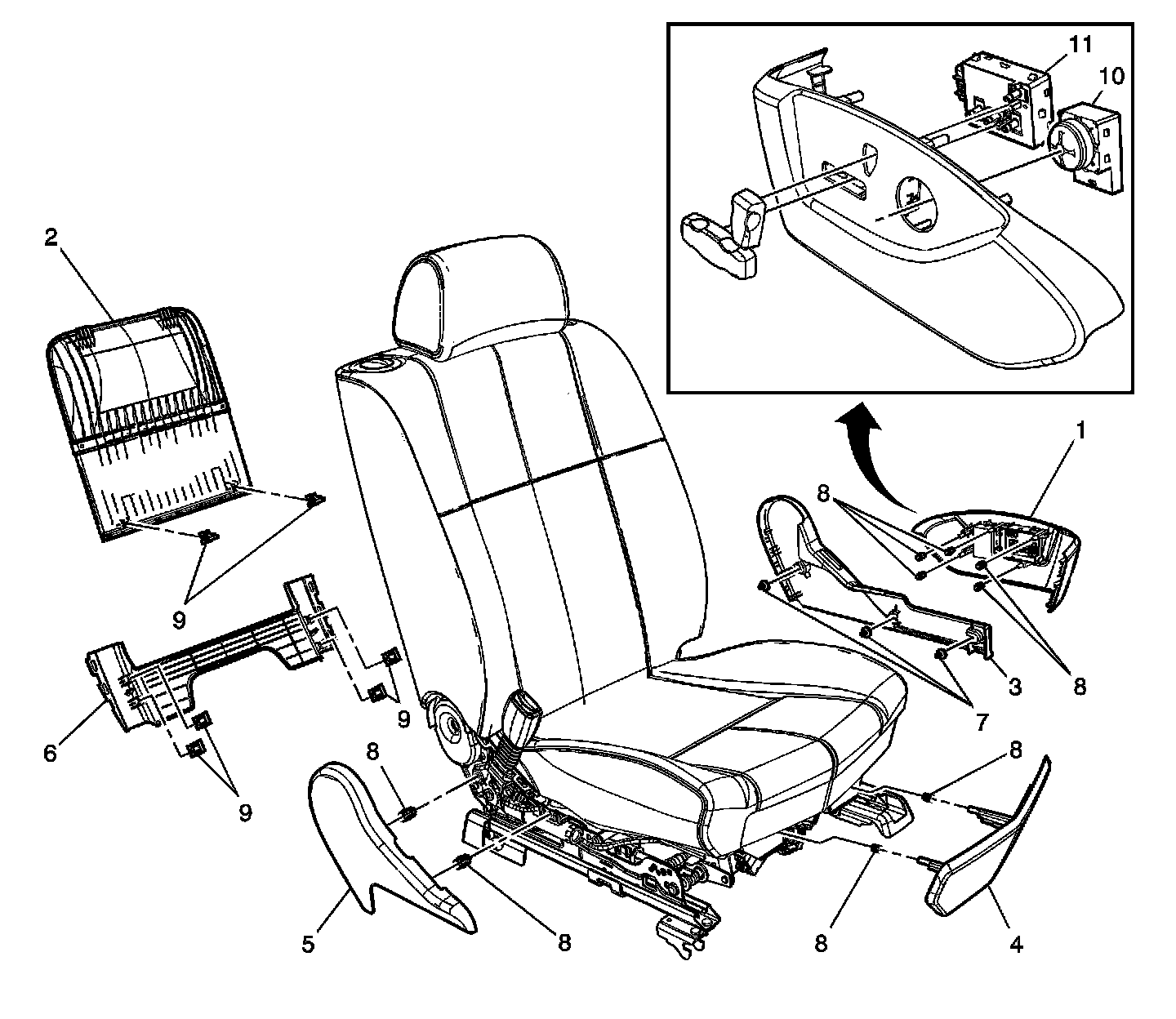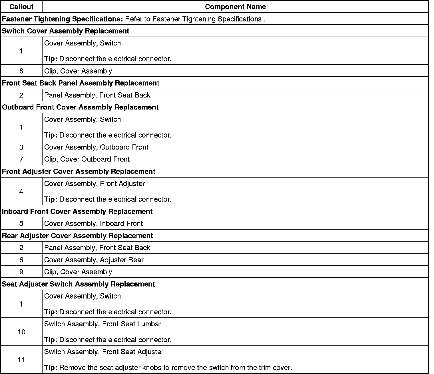 Side Cover Assemblies, Adjuster Switch, Lumbar Switch, Back Panel Replacement - Front Seat