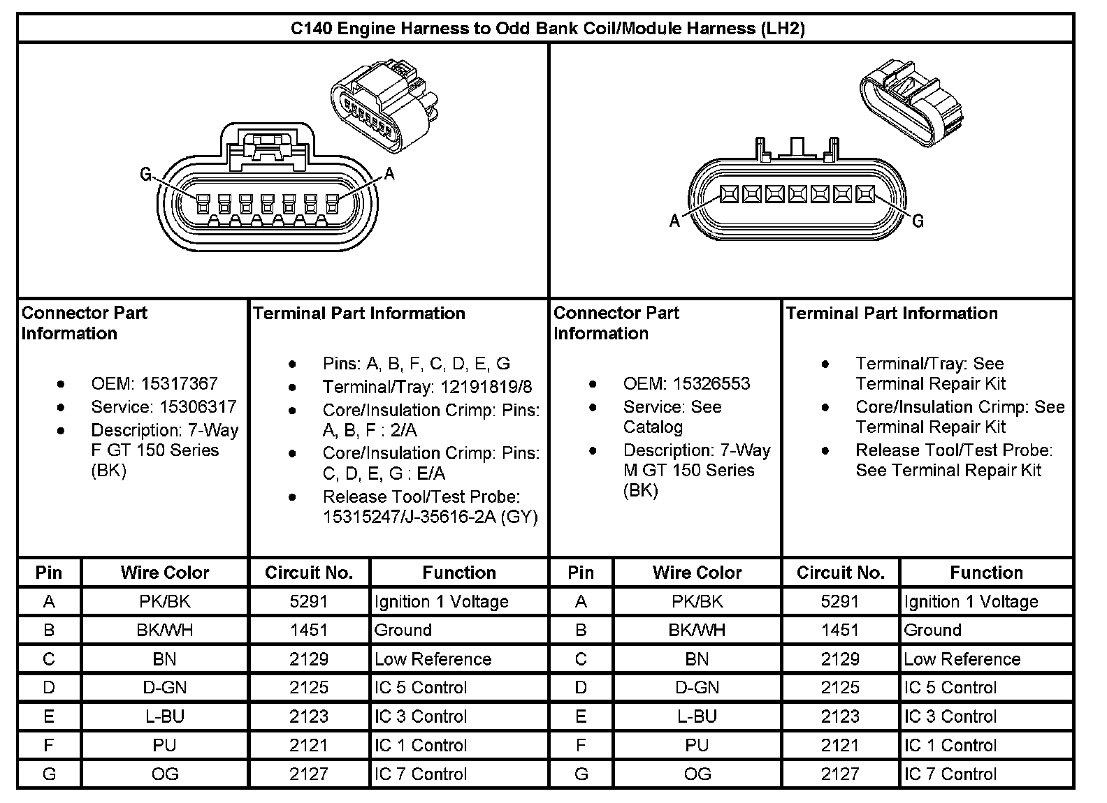 C140 Engine Harness To Odd Bank Coil/Module Harness: