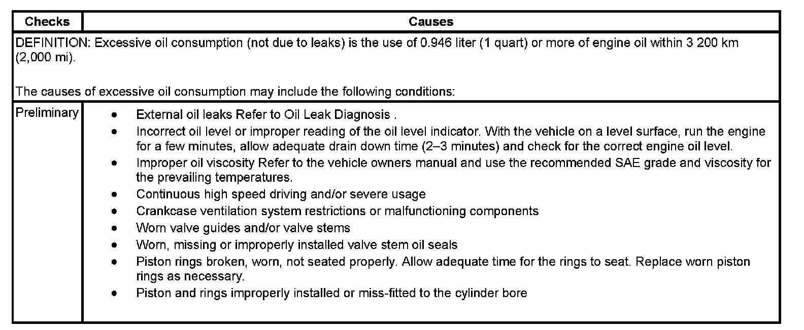 Oil Consumption Diagnosis: