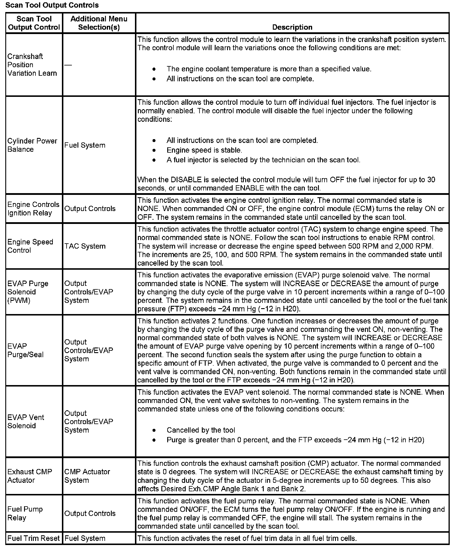 Scan Tool Output Controls