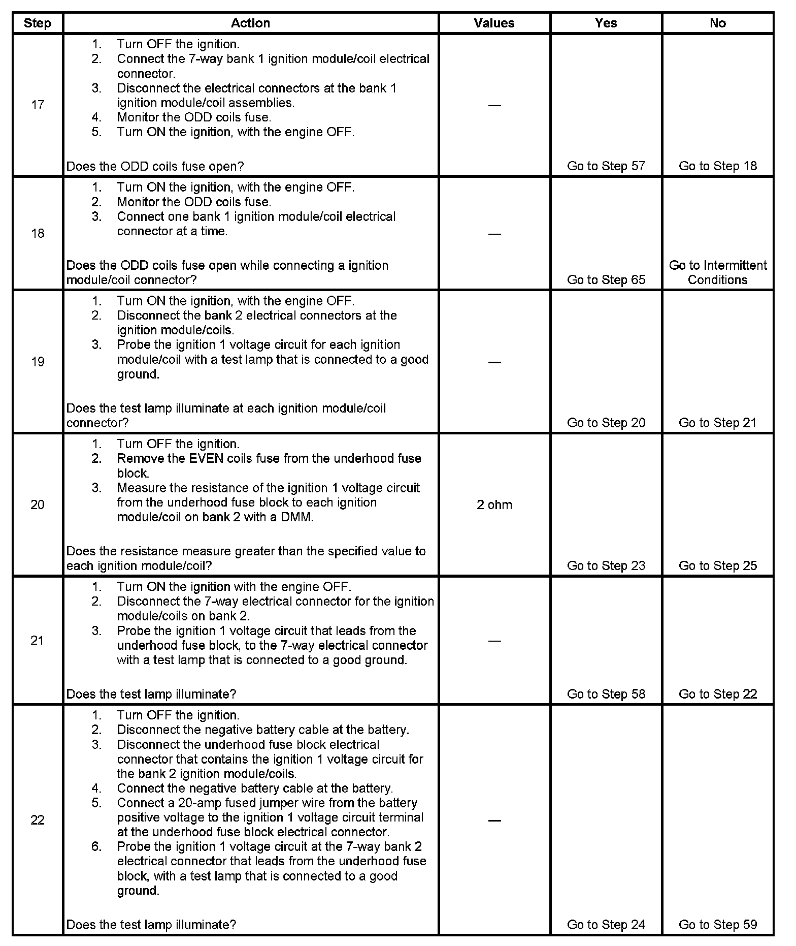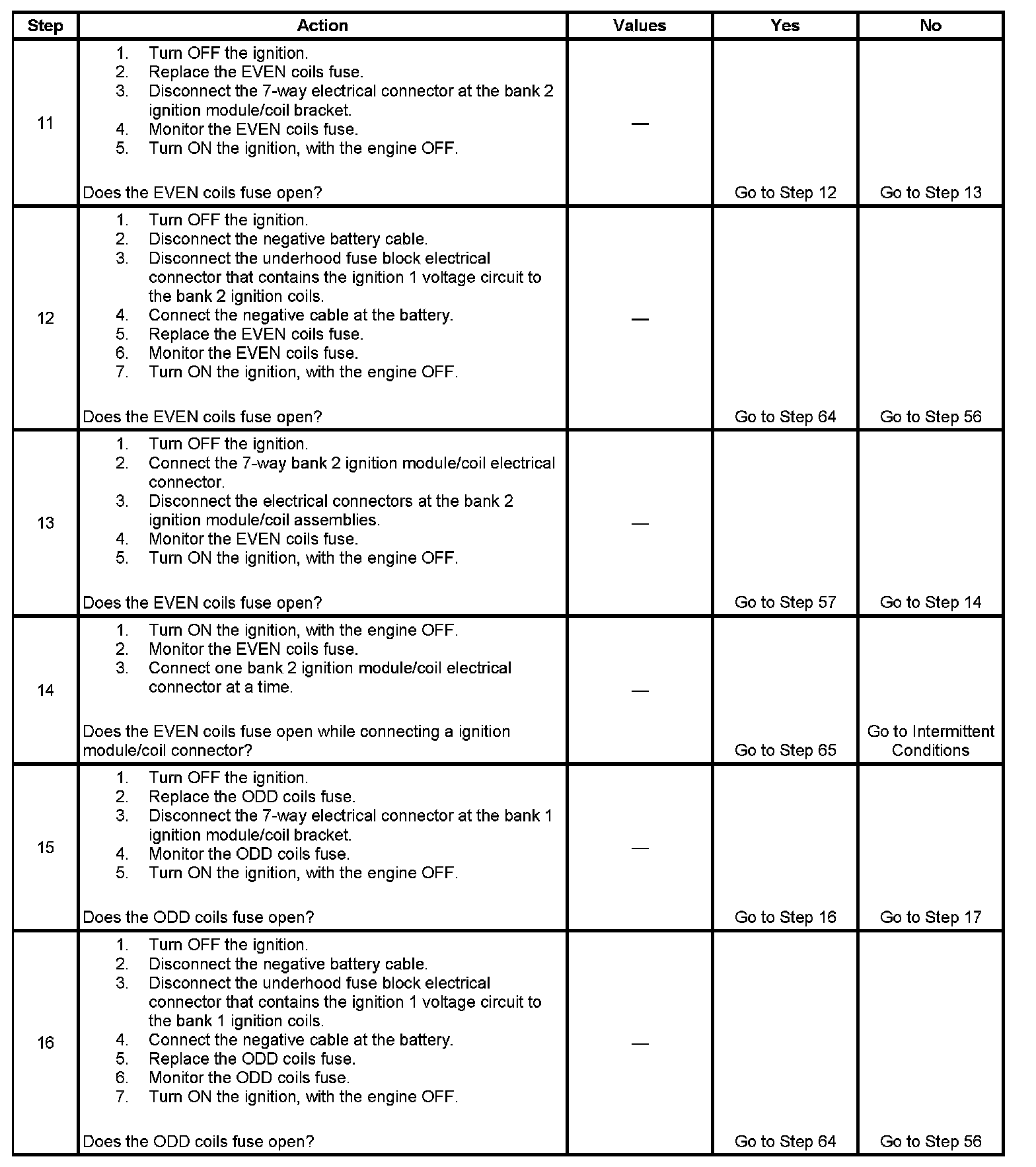 - If the ODD coils or EVEN coils fuse opens, this will also result in the loss of ignition 1 voltage to the odd or even fuel injectors.