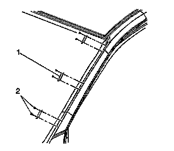 2. Remove the windshield side reveal molding from the vehicle. Refer to Windshield Side Reveal Molding Replacement (Windshield Side Reveal Molding Replacement) .