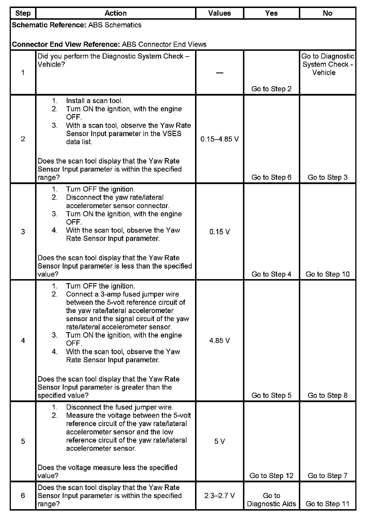 ^ The yaw rate sensor input voltage is less than 0.15 volts.