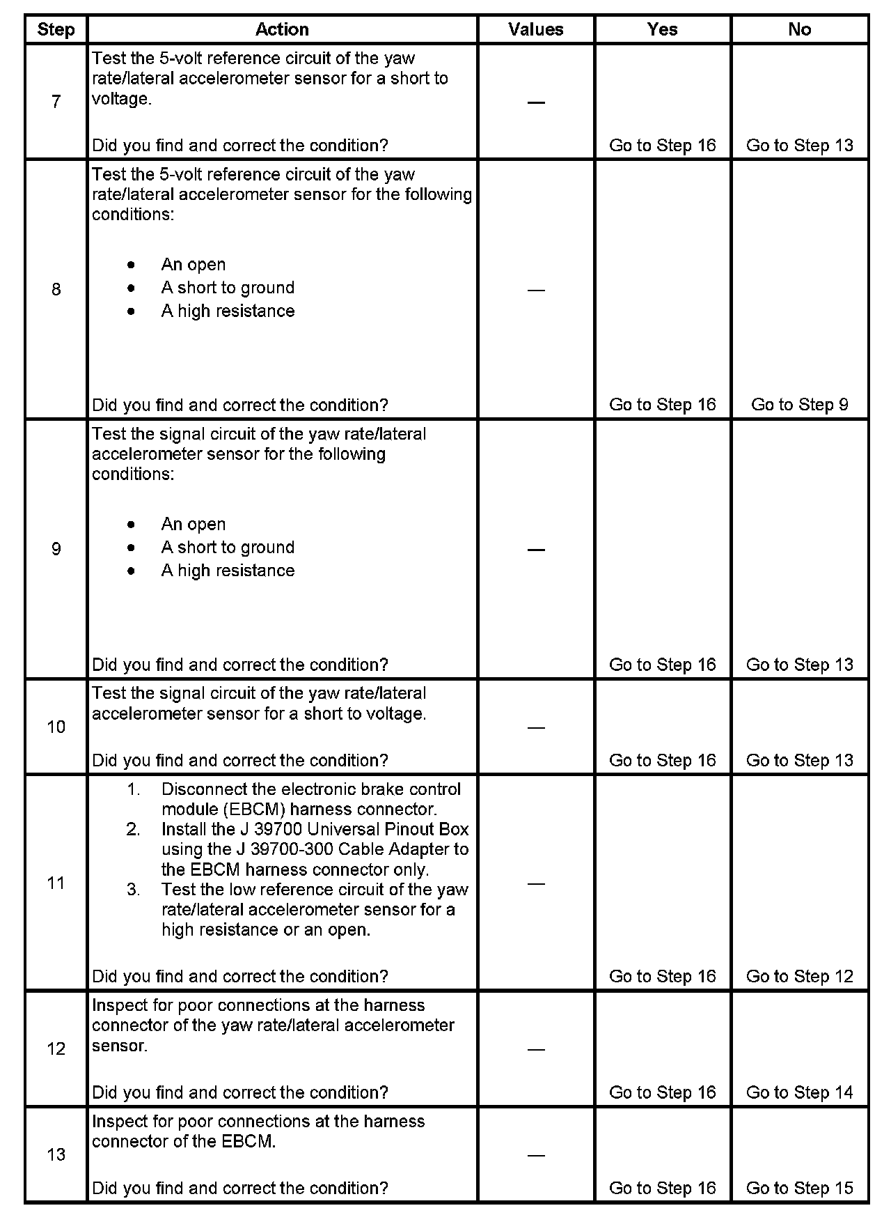 6. Tests the bias voltage of the yaw rate sensor.