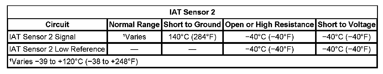 Compare the IAT sensor 2 resistance to the values listed in the Temperature vs. Resistance table. Refer to Temperature Versus Resistance.