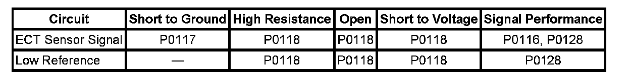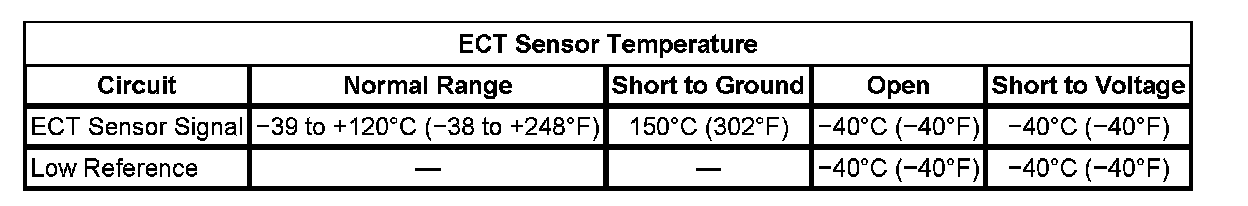 - A slight to moderate resistance in the ECT sensor signal circuit or low reference circuit will affect this diagnostic. This condition results in a greater voltage on the ECT sensor signal circuit, which is interpreted by the ECM as a colder ECT.