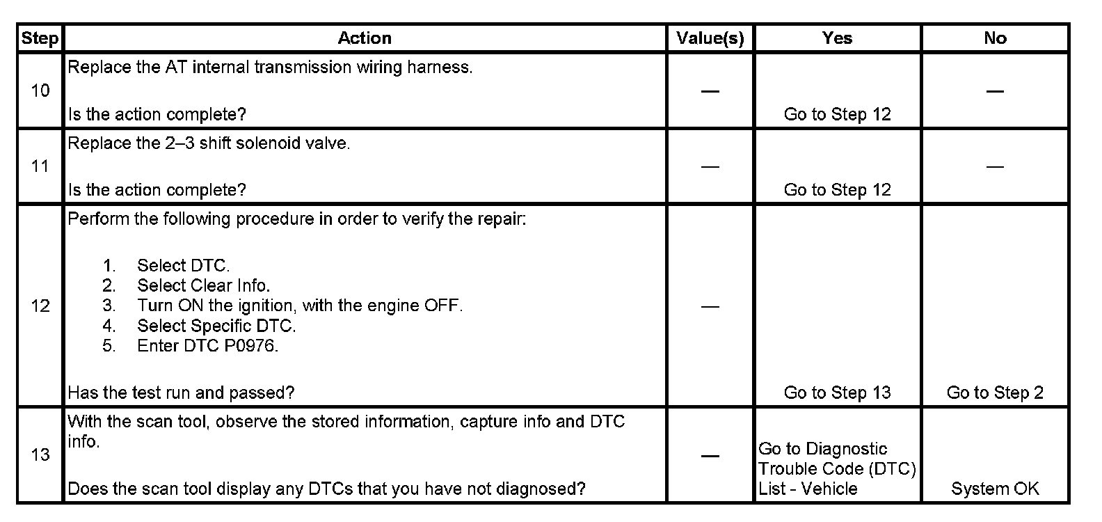 ^ The TCM stores DTC P0976 in TCM history.