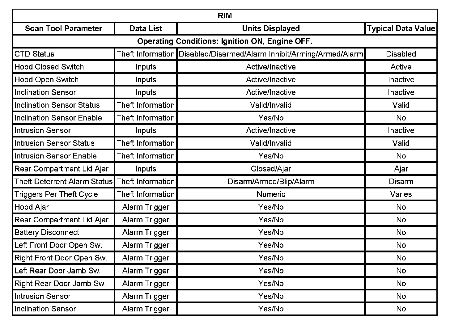 Scan Tool Data List