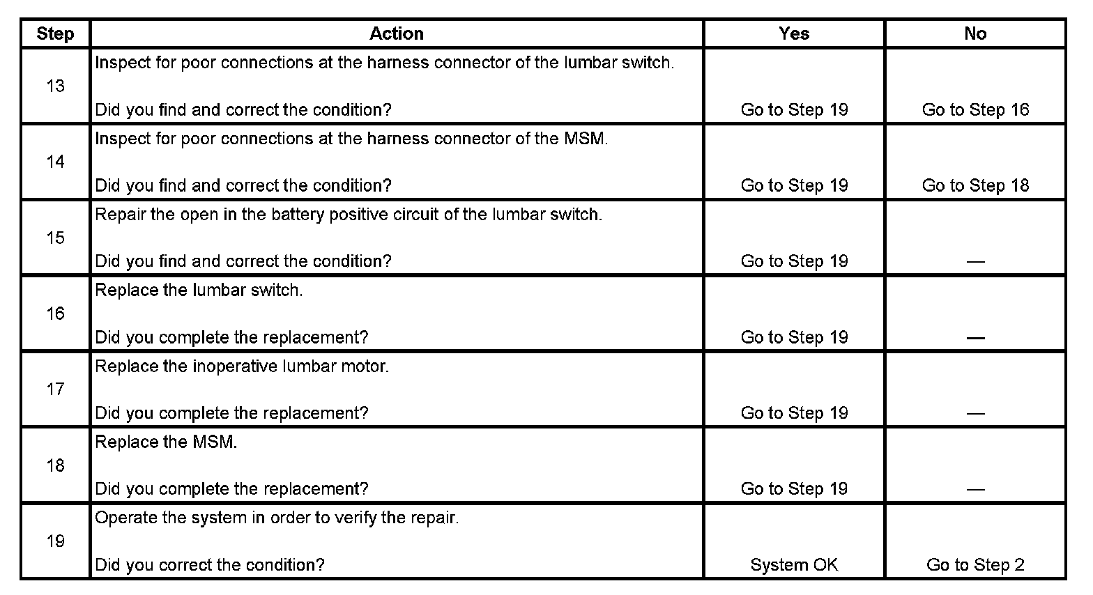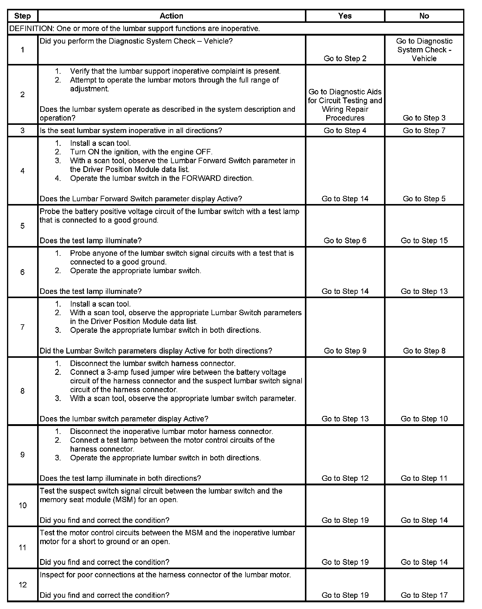 Lumbar Support Inoperative (With RPO Code A45)