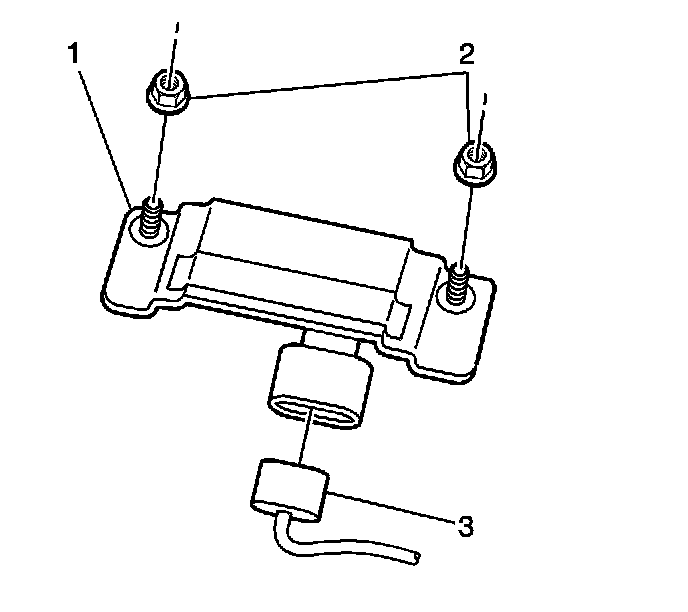 3. Connect the yaw rate sensor/lateral and longitudinal accelerometer electrical connector (2) to the yaw rate sensor/lateral and longitudinal accelerometer (1).