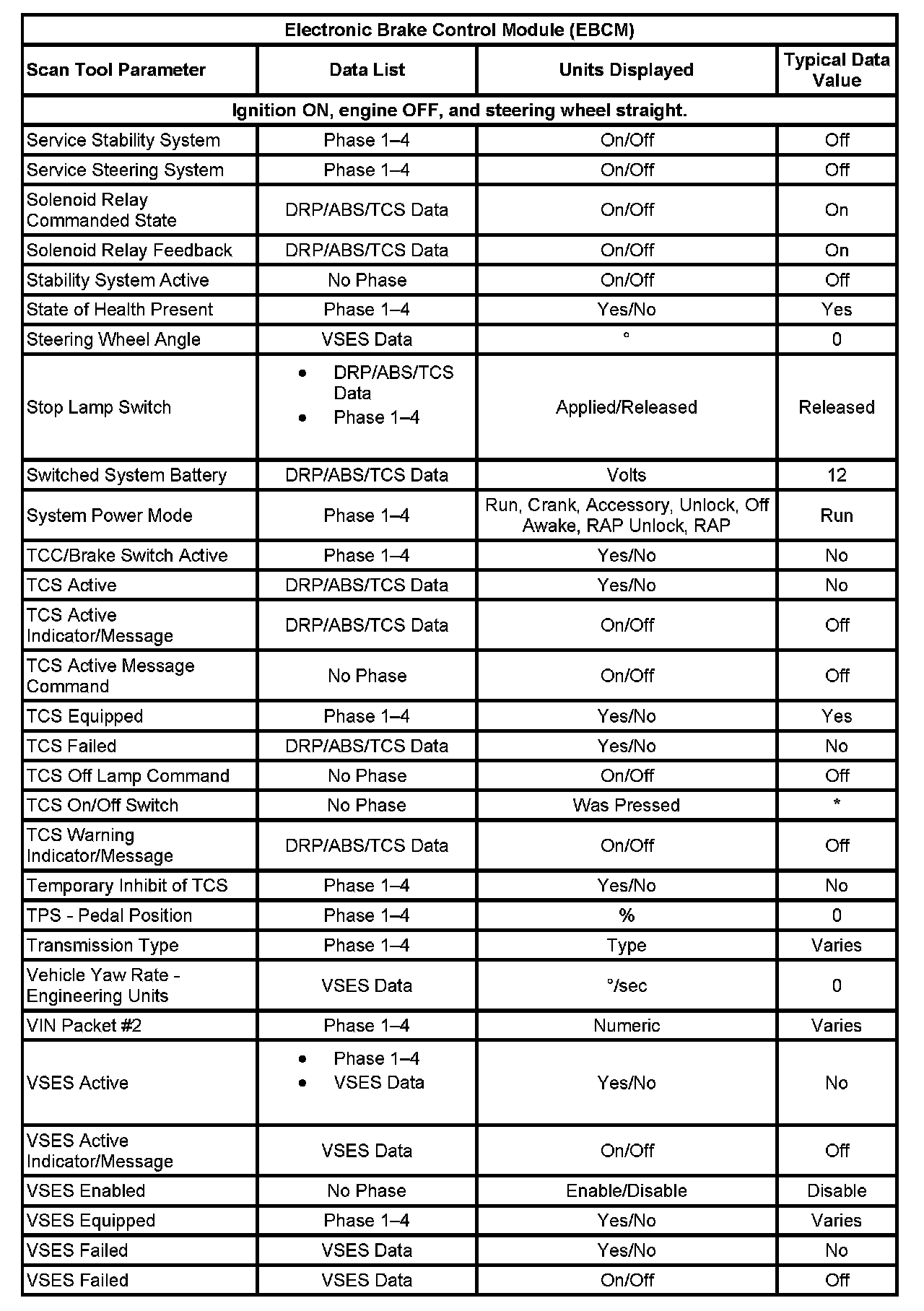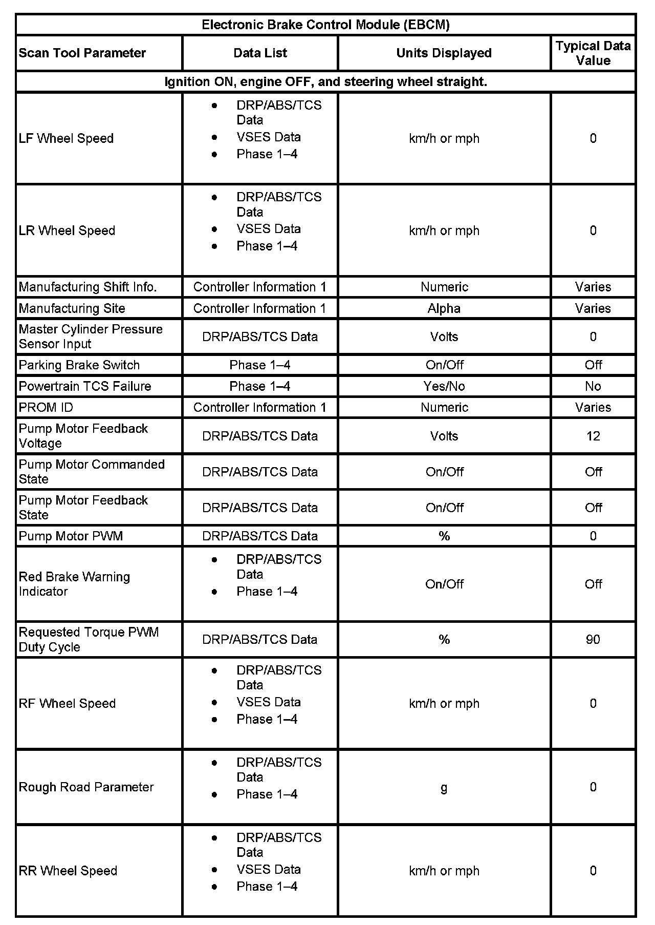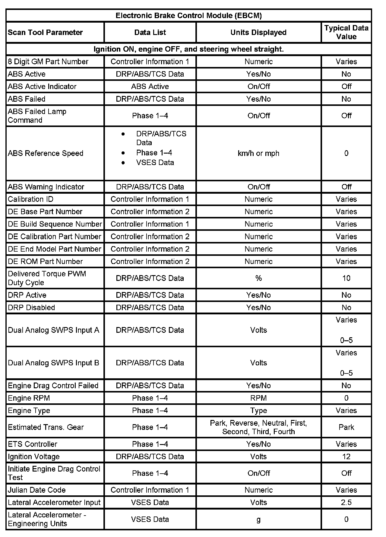 Scan Tool Data List