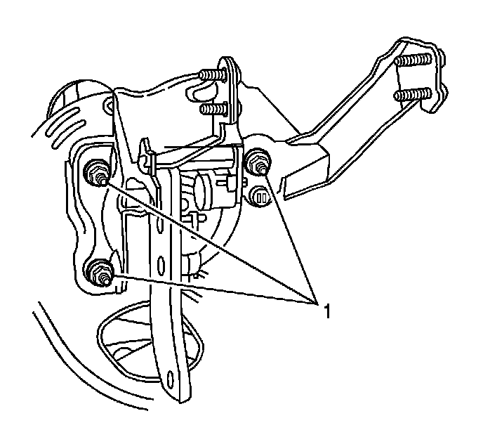 3. Install the vacuum brake booster mounting plate (1) to the cowl and brake pedal assembly.