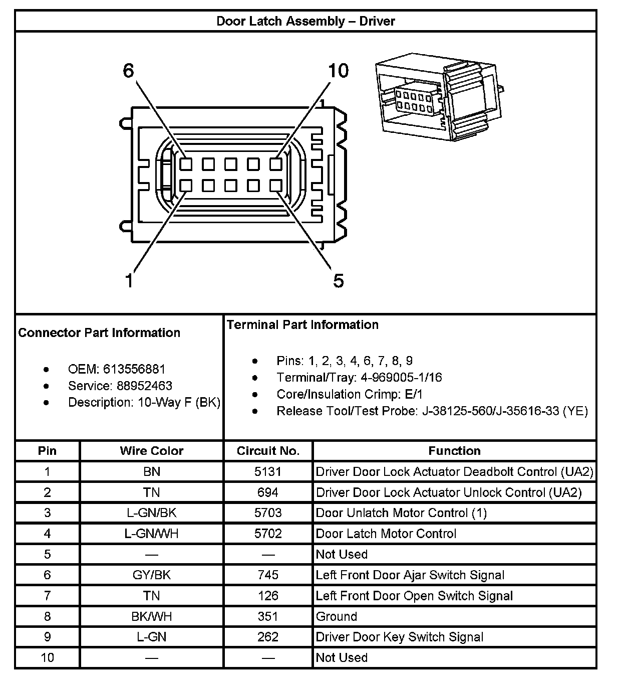 Door Latch Assembly - Driver: