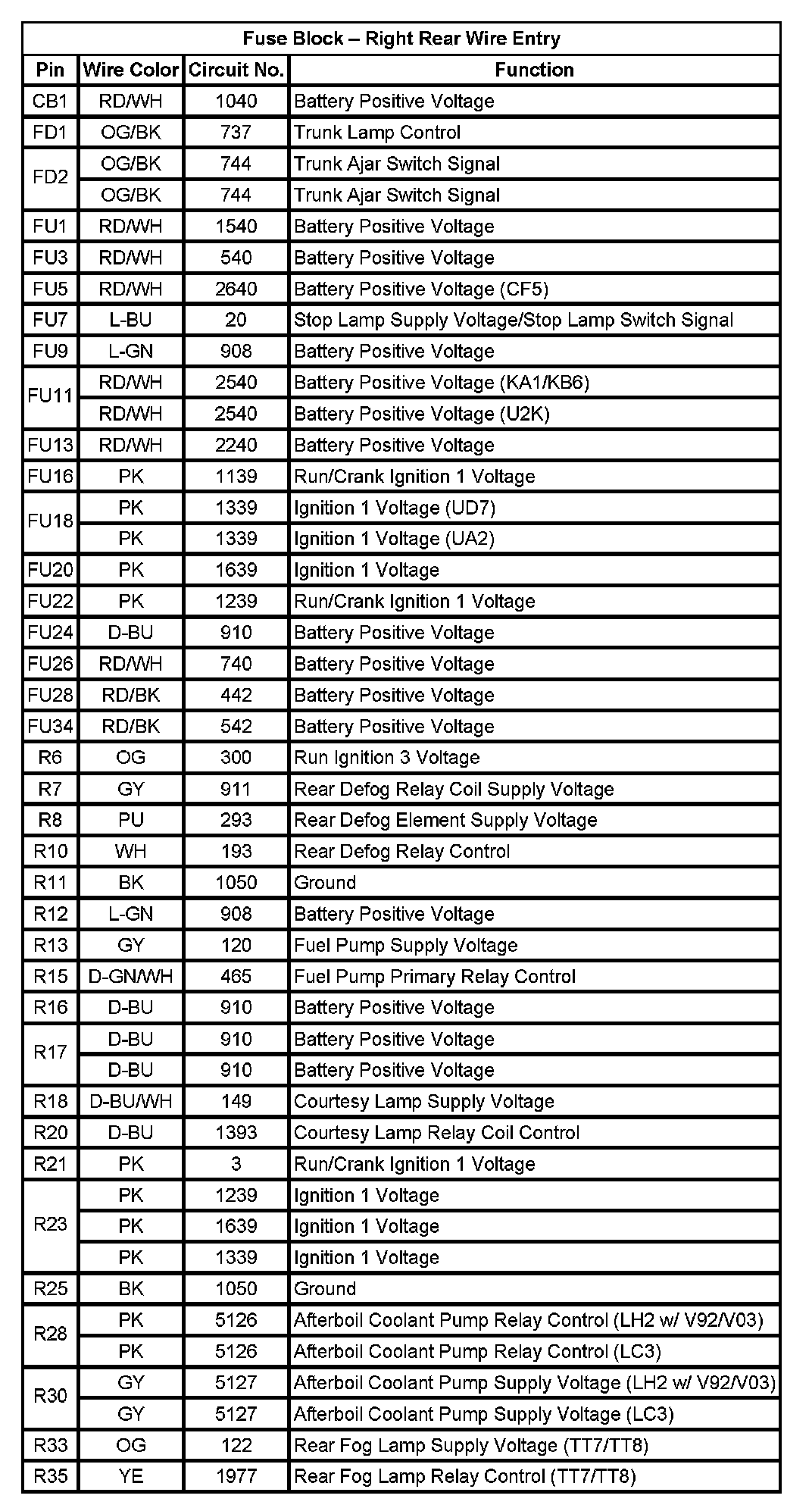Fuse Block - Right Rear Wire Entry (Part 1):