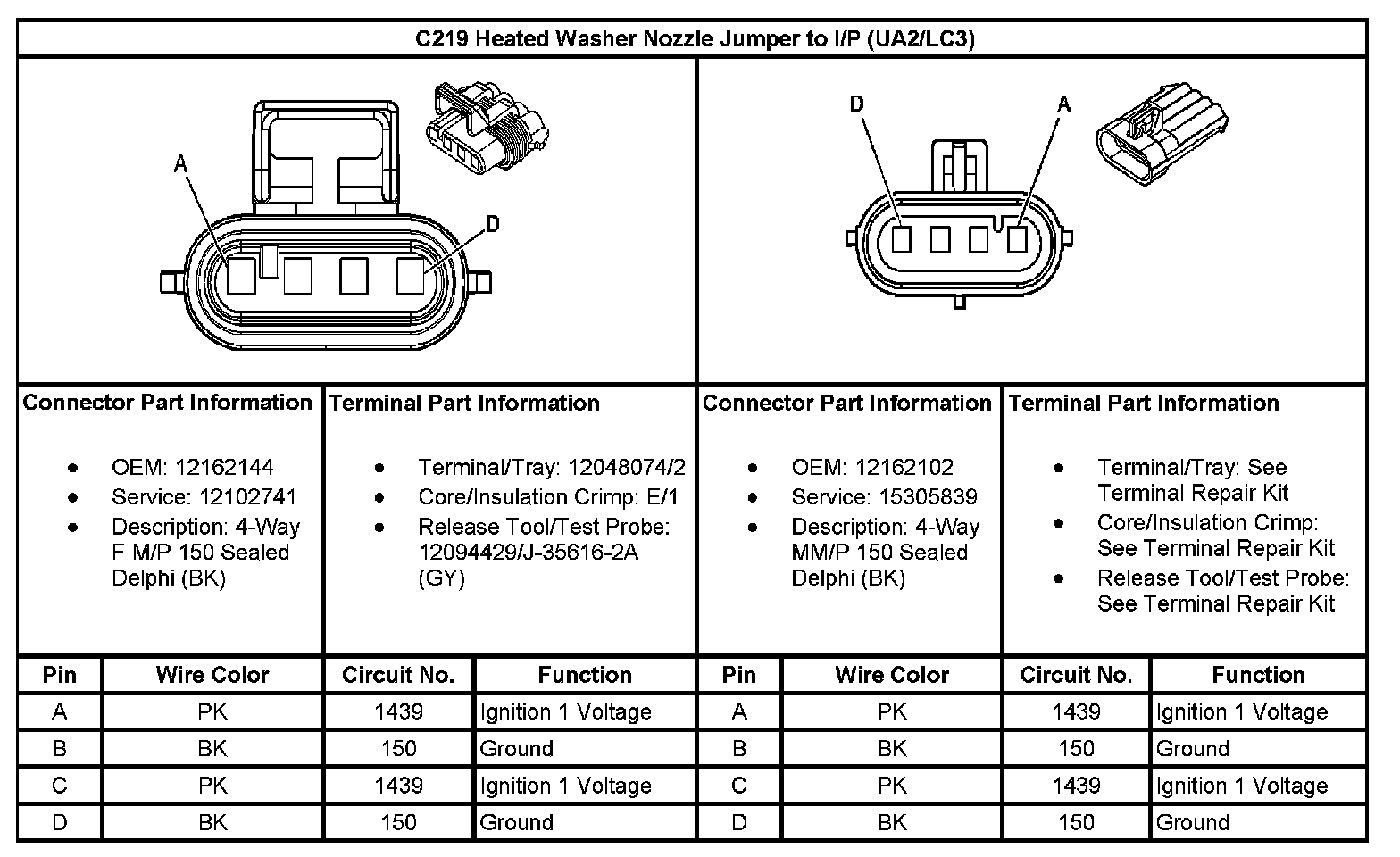 C219 Heated Washer Nozzle Jumper To I/P (With RPO Code UA2):