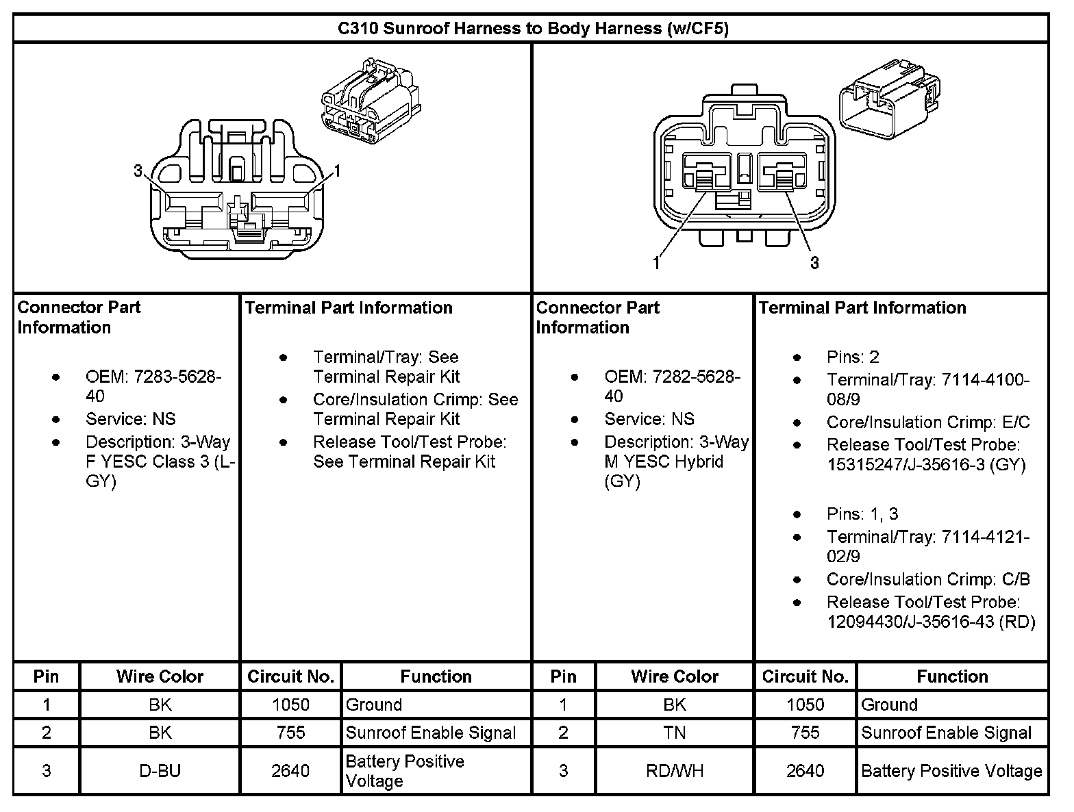 C310 Sunroof Harness To Body Harness (With RPO Code CF5):