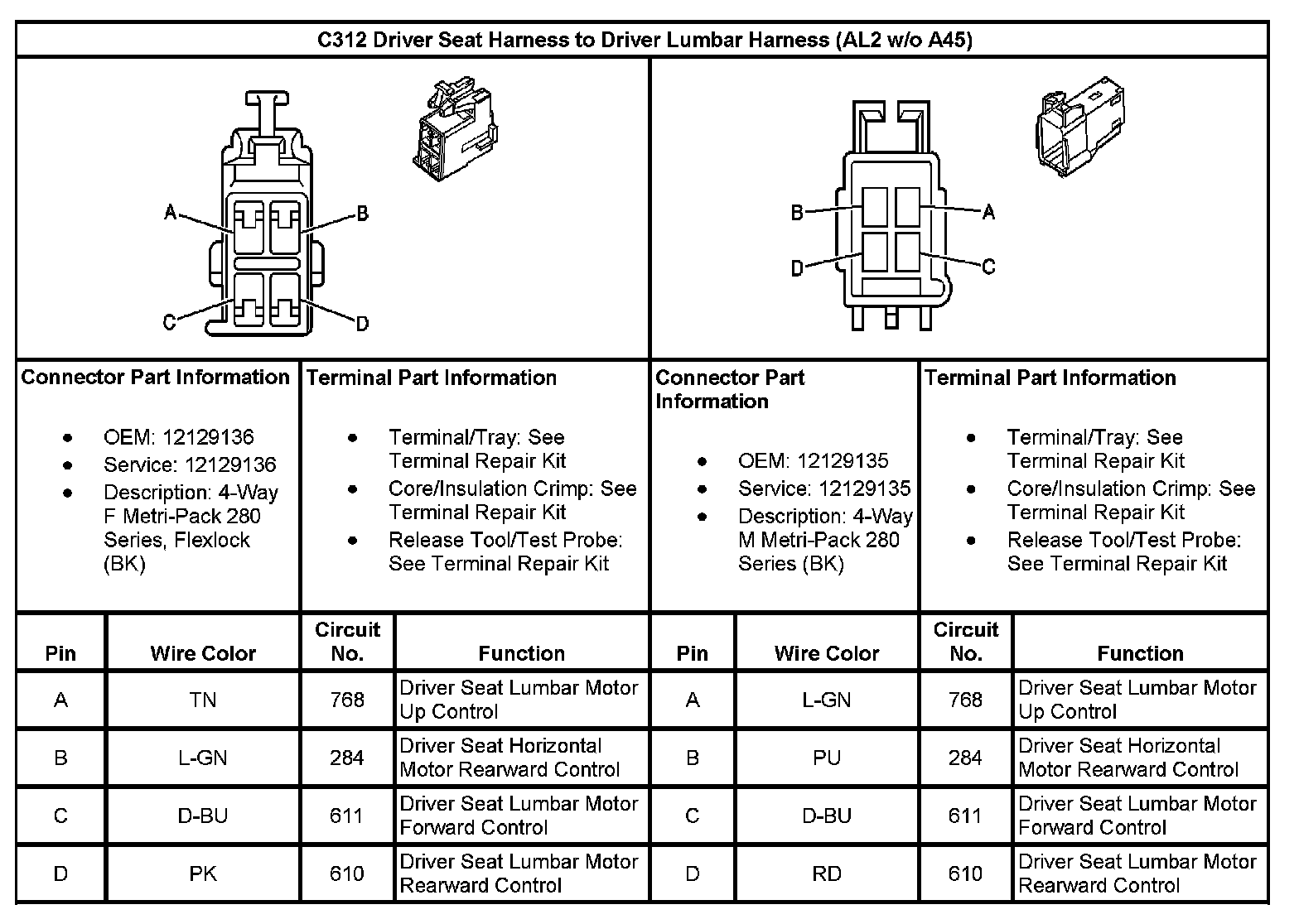 C312 Driver Seat Harness To Driver Lumbar Harness (With RPO Code AL2 Without RPO Code A45):