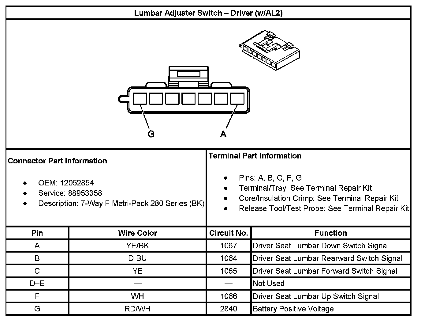 Lumbar Adjuster Switch - Driver (With RPO Code AL2):