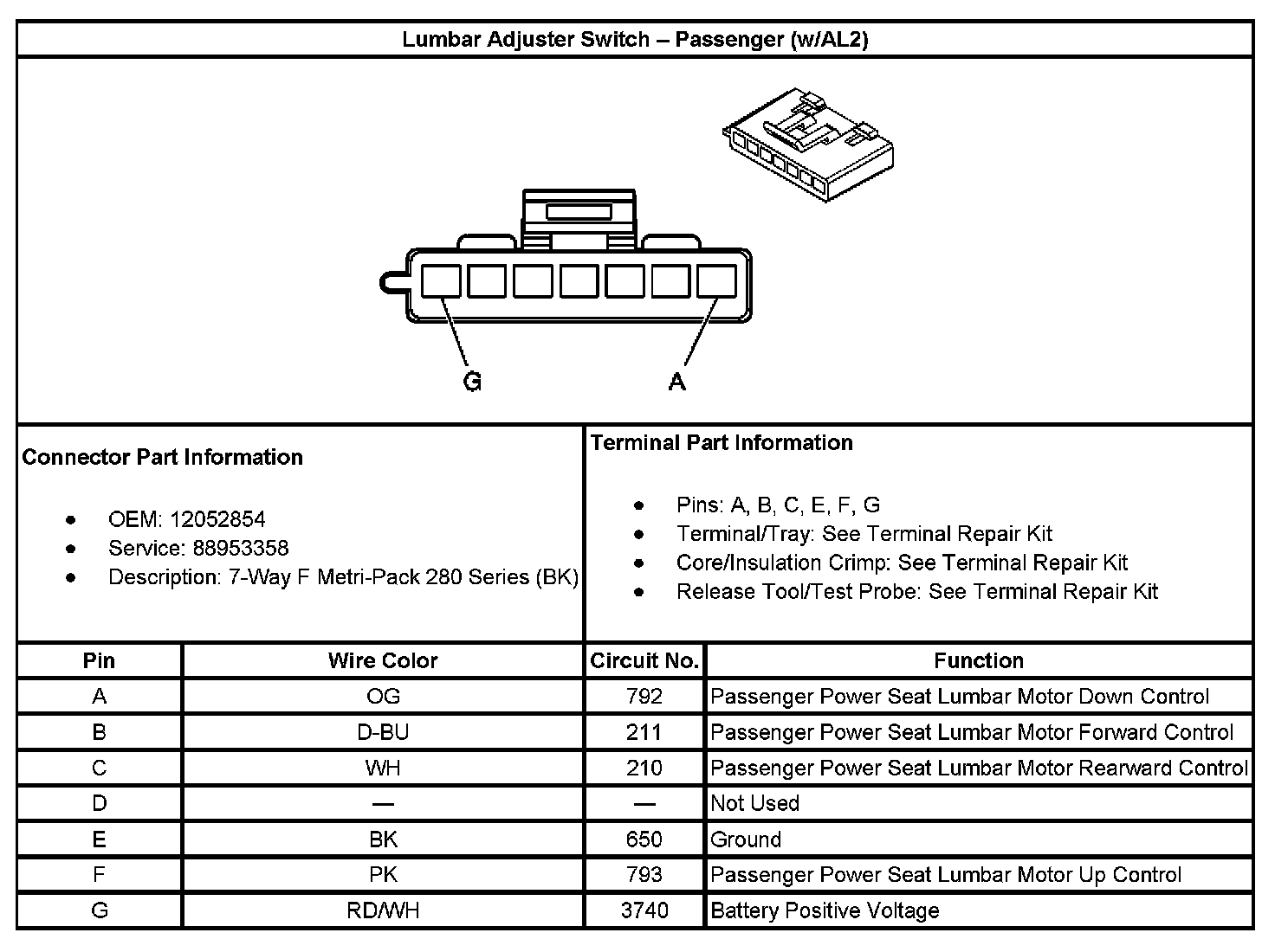 Lumbar Adjuster Switch - Passenger (With RPO Code AL2):