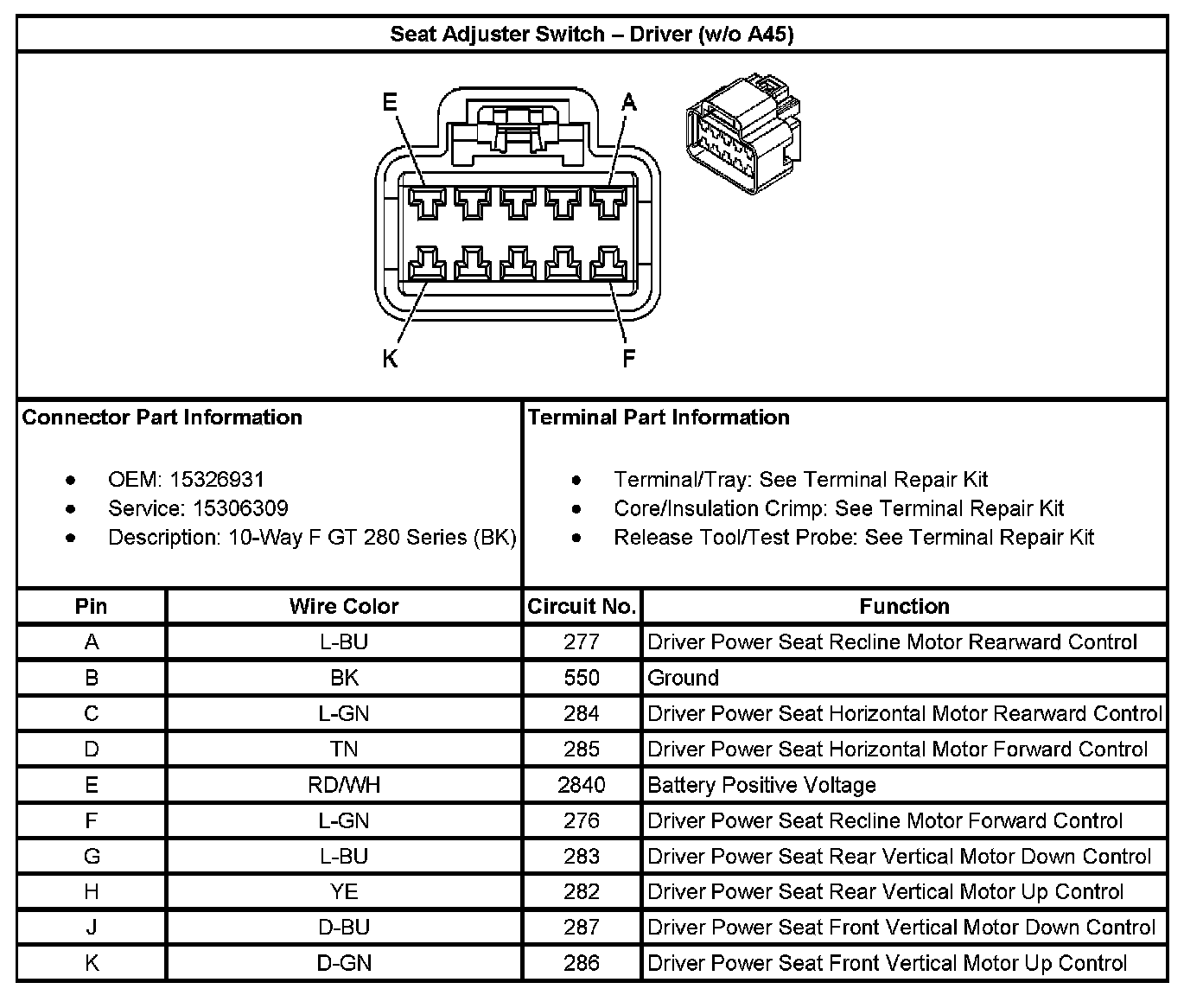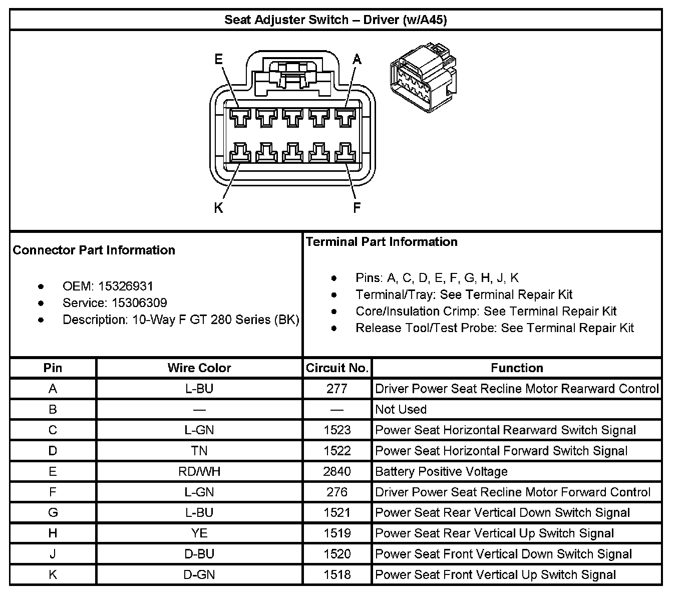 Seat Adjuster Switch - Driver (With RPO Code A45):
