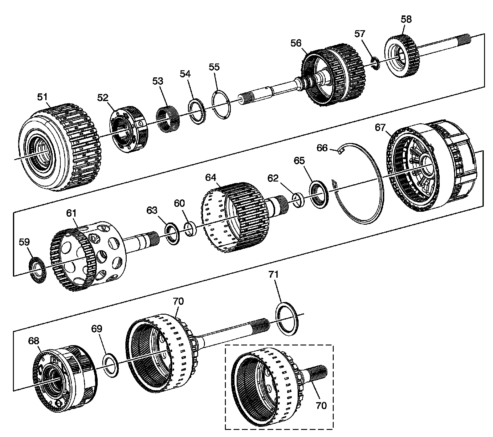 61 - 1-2-3-4 Clutch (w/ Output Carrier Inner Sun Gear Shaft) Hub Assembly