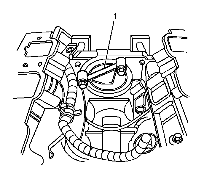 9. Remove the J 39313 (1) from the spark plug hole.