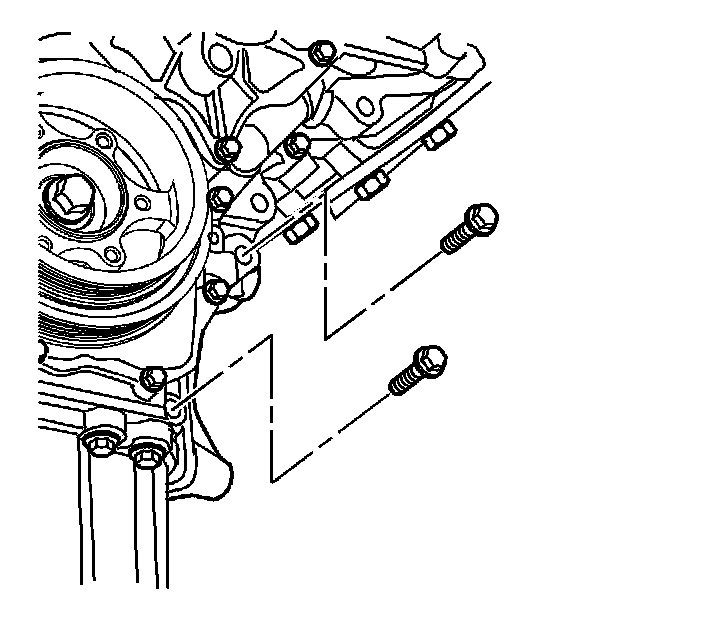 3. Remove the P/S pump and A/C compressor bracket front bolts.