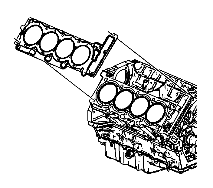 3. Install a new right cylinder head gasket using the deck face locating pins for retention.