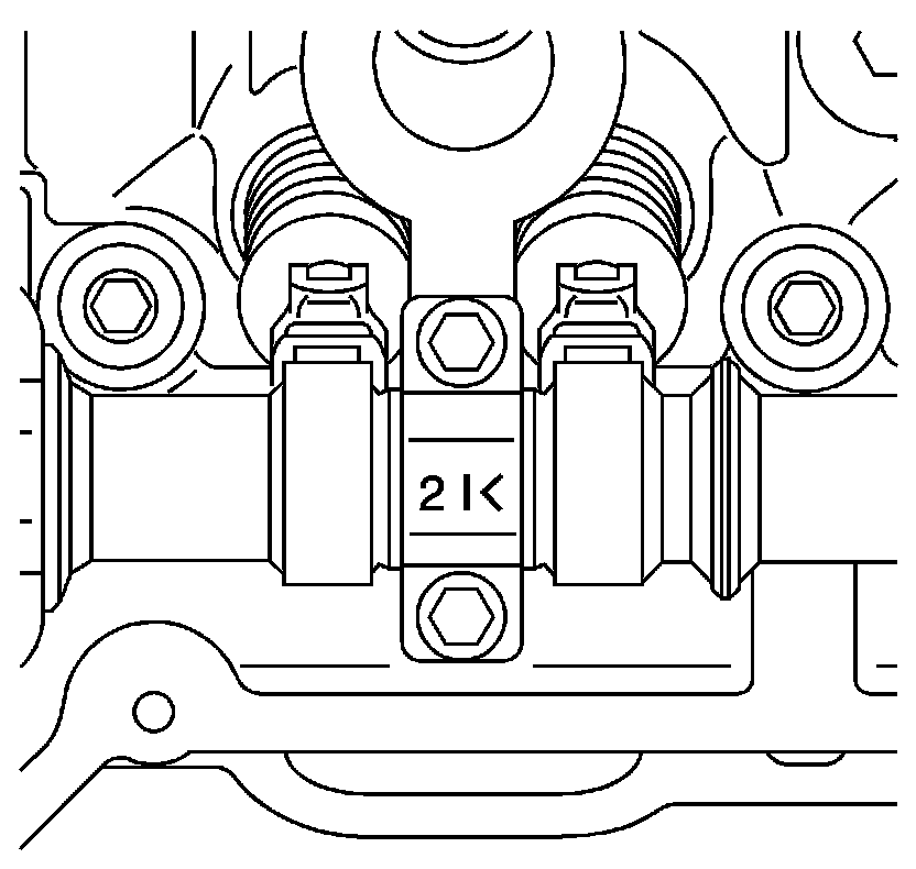 6. Observe the markings on the camshaft bearing caps. Each camshaft bearing cap is marked in order to identify its location. The markings have the following meanings: