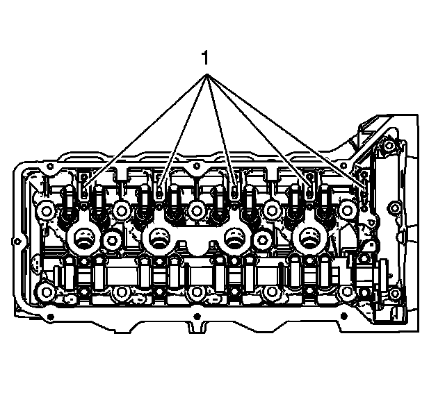 Important: Ensure each valve rocker arm is properly aligned to the valve tip, the valve lifter and the camshaft lobe. Inspect the alignment prior to and after the camshaft caps are tightened to specifications.