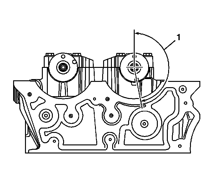 Place the camshaft in the camshaft carriers with the camshaft sprocket drive pins near the 45 to 60° location (1), clockwise from the top of their rotation and the camshaft lobes in a neutral position. The camshafts can be identified by a stamping near the rear journal. For example: L-EXH is defined as Left Bank Exhaust.