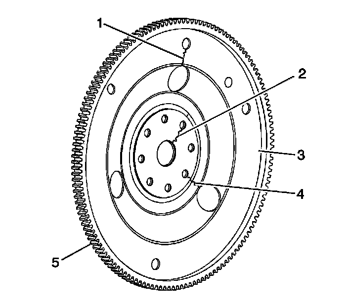 ^ Stress cracks around the engine flywheel-to-torque converter mounting bolt hole locations (1) and/or engine flywheel-to-crankshaft (2, 4)