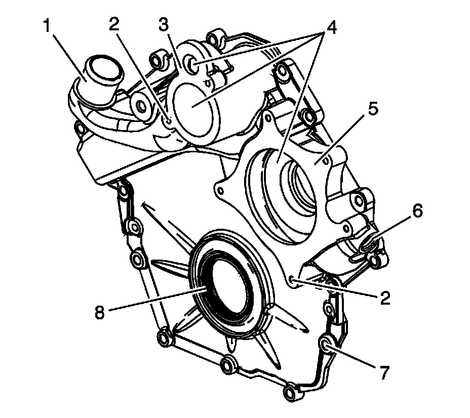 ^ The water pump gasket sealing surface (5) for damage