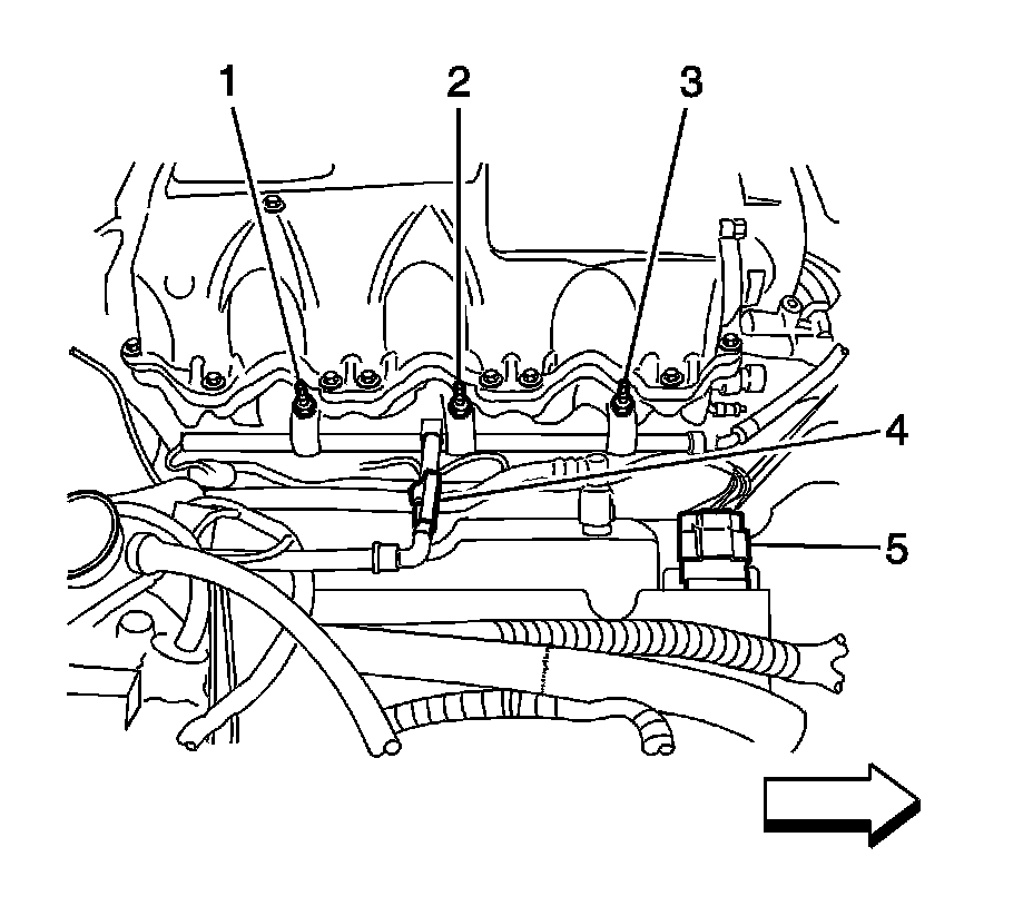 41. Connect the chassis fuel line (4) to the fuel rail.